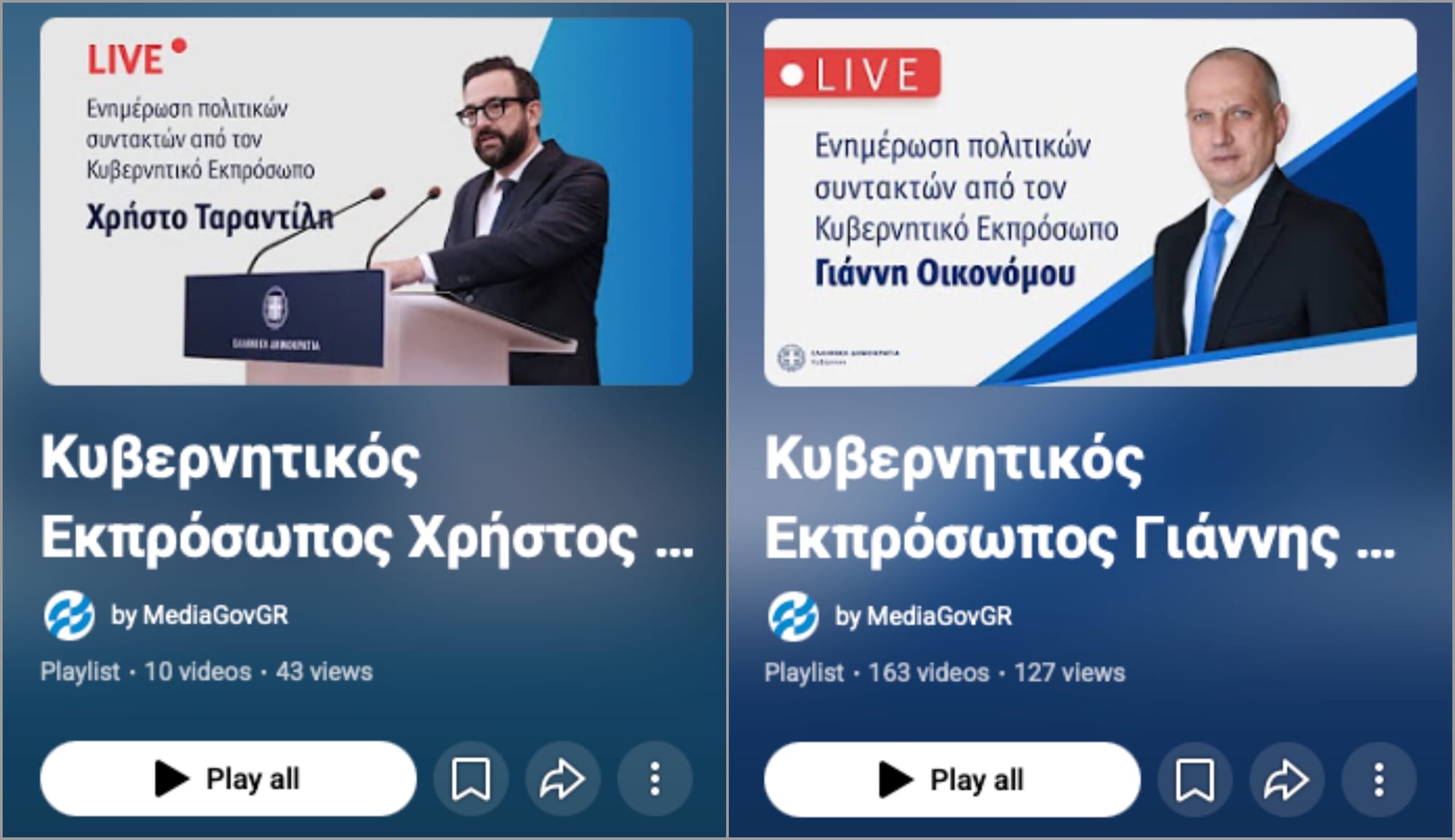 Πόσο είπαμε ότι άντεξε ο κ. Ταραντίλης; Σκάρτα δύο μήνες. Ο κ. Οικονόμου έμεινε στη θέση επί 21 μήνες! Χαρακτηριστικό είναι πως, στις σχετικές playlist στο Youtube, ο μεν Ταραντίλης έχει μόλις δέκα βίντεο, ο Οικονόμου 163.
